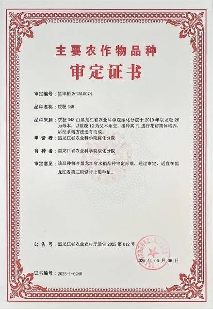 该品种符合黑龙江省水稻品种审定标准,通过审定。适宜在黑龙江省第三积温带上限种植,因其整精米率高、食味佳综合抗性好,具有广阔的市场前景和较强的推广开发价值。