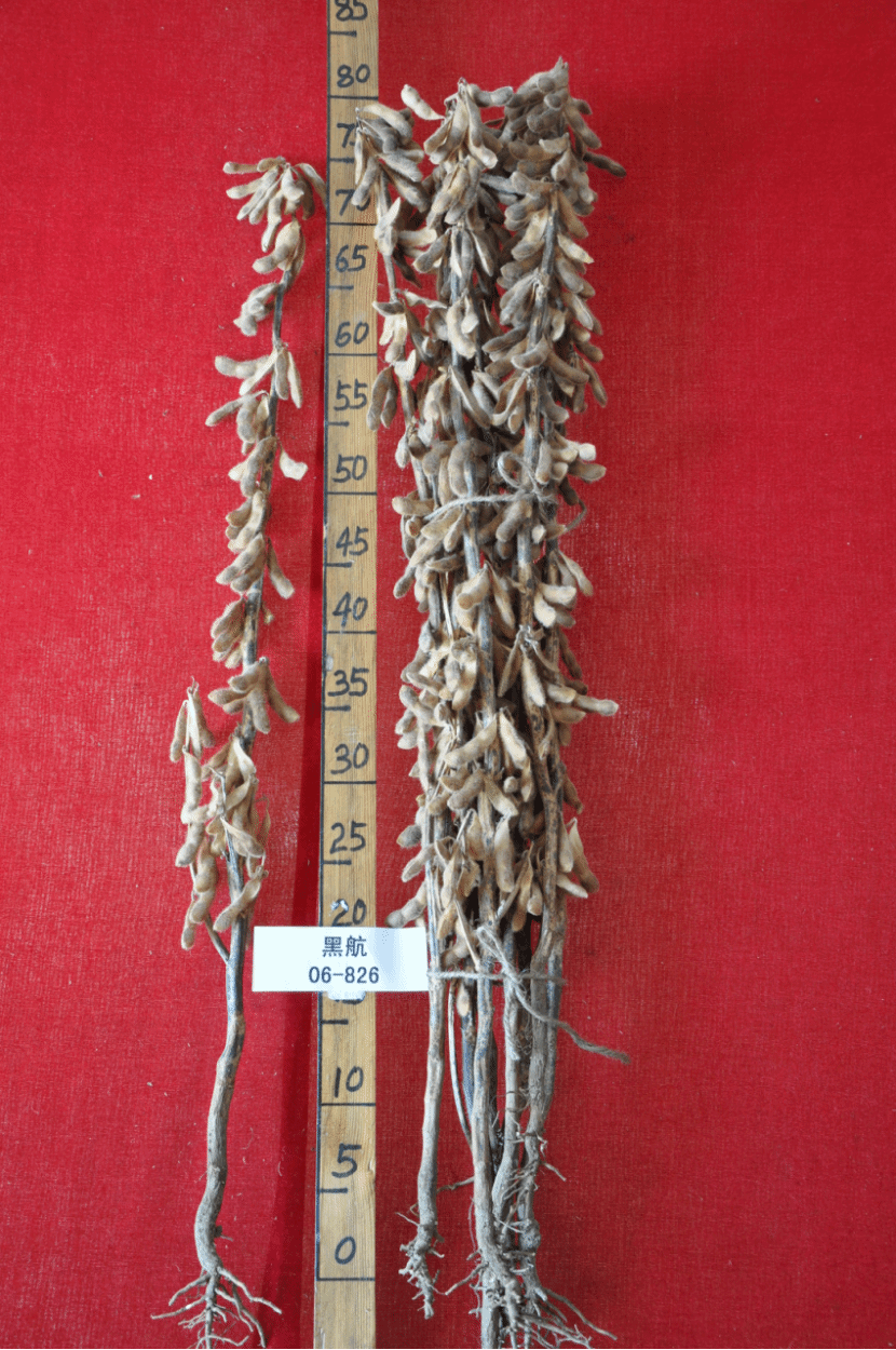 特征特性:该品种生育期平均115天,比对照黑河43号晚4天。株型收敛,亚有限结荚习性。株高65.2厘米,主茎14.4节,有效分枝0.2 个,底荚高度14.5厘米,单株有效荚数25.7个,单株粒数59.9粒,单株粒重11.2克,百粒重19.7克。长叶,白花,灰毛。籽粒圆形,种皮黄色、有光泽,种脐浅黄色。接种鉴定,中抗花叶病毒病1号株系,病级:0.21;感3号株系,病级:0.21;中抗或中感灰斑病,病级:0.28。两年平均粗蛋白含量42.19%,两年平均粗脂肪含量19.6%。