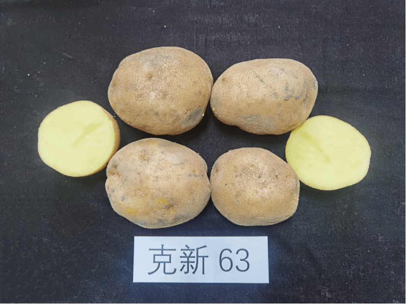 特征特性:中晚熟鲜食品种,生育日数89天左右(从出苗的茎叶枯黄),株型直立,茎绿带褐色,叶绿色。花冠紫色,块茎椭圆形,大而整齐,浅红皮黄肉,薯皮略麻,芽眼中等。耐贮性强,结薯集中,食味优。田间中抗晚疫病,抗PVX、中抗PVY病毒。