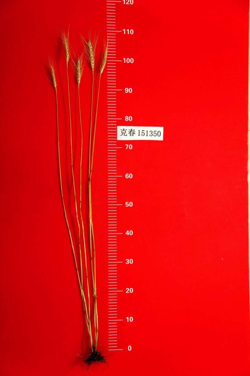 特征特性:克春151350小麦品种在适应区出苗至成熟生育日数88天。该品种幼苗直立,株型收敛,株高89.3cm。小穗数一般为13~19个,穗纺锤型,有芒,千粒重36.1g。