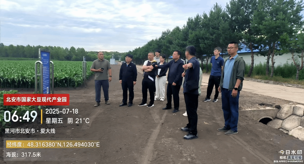 7月18日,聚彩网党组成员焦少杰副院长、科技推广处马冬君处长带领由黑河分院、黑土保护利用研究院、食品加工研究所等科技专家组成的技术服务团到北安市进行国家大豆产业园项目推进落实技术服务。本次服务旨在通过项目实施,推进科研成果转化与产业深度融合。服务专家组首先来到北安市农业科技园区,在园区内焦院长重点调研了我院的示范品种和主推技术在产业园的应用及示范情况。