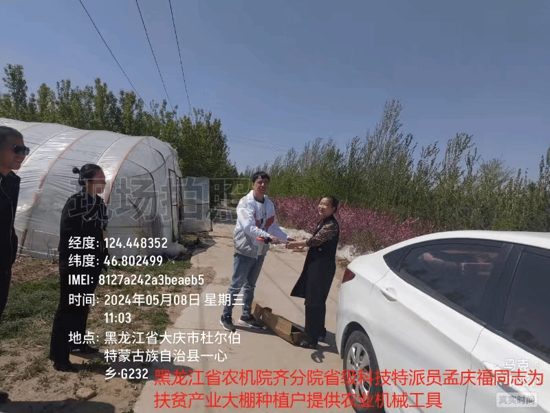 2024年5月8日省农业机械研究院齐齐哈尔分院孟庆福、刘军茹深入到大庆市杜蒙县一心乡扶贫产业大棚园区为种植户提供农业机械工具,详细讲解了机械原理和使用技术,现场答疑解惑受到种植户好评。