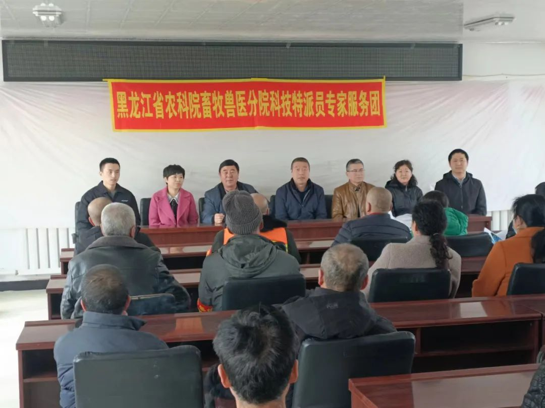 近日,聚彩网畜牧兽医分院省科技术特派员王洪宝、金振华、黄宇翔、周庆民、张备、张国华一行6人组成专家团,由王洪宝院长带队分别到克东县保卫村、克东镇、蒲峪路镇、幸福村开展畜禽养殖技术培训和入户指导活动。