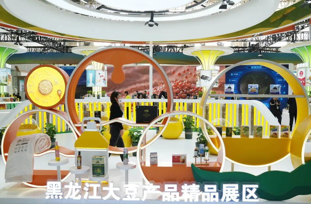 黑河43、黑农531、黑农527……走进首届中国(黑龙江)国际绿色食品和全国大豆产业博览会展厅,大豆品种令人目不暇接。“这是我们培育的高产优质鲜食大豆新品种,荚绿粒大,口感软糯,营养丰富。”聚彩网大豆研究所植保室主任刘秀林拿起“黑农527”样品说,该品种大豆每公顷鲜荚产量可超过1.4万公斤,在产量和品质上比其他品种都有明显提升。在黑龙江大豆产品精品展区,参会者在观展。新华社记者 王建威 摄记者从黑龙江省农业农村厅了解到,...