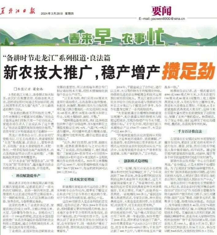 黑龙江日报:农技大推广 稳产增产攒足劲新
