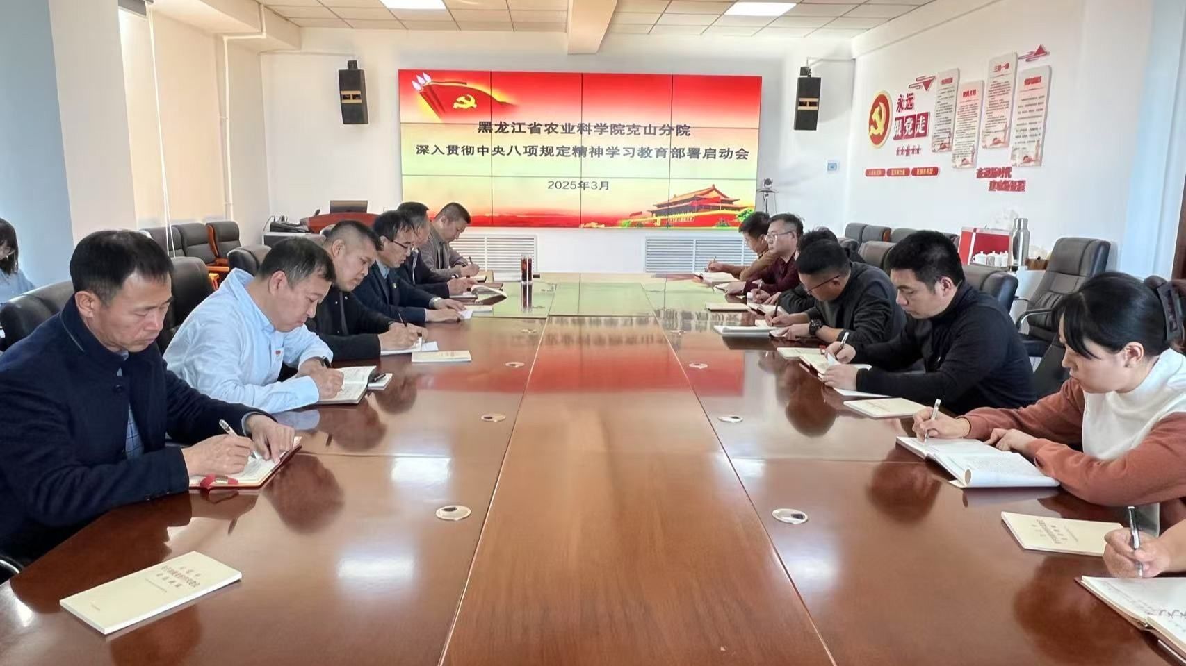 为进一步加强作风建设,深入贯彻落实中央八项规定精神,3月25日,乡村振兴科技研究所党支部召开八项规定精神学习教育启动会。单位领导班子成员、各部门负责人及全体党员干部参加会议。 会上,郭佰涛书记传达了上级关于深入贯彻中央八项规定精神学习教育的相关文件和会议精神,强调了此次学习教育的重要性和紧迫性。明确了开展学习教育中央八项规定精神是巩固深化主题教育和党纪学习教育成果、纵深推进全面从严治党的重要举措,要求全体干部职工要提高政治站位,...